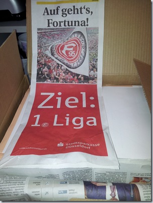 Post nach Berlin 22.5.2012 Bei der Rücksendung von größeren Ermittlungsakten muss man die Hohlräume im Paket manchmal mit Zeitungspapier ausstopfen. Ich finde, meine Sekretärin hat das nett gemacht: Die Sendung ging an die Staatsanwaltschaft Berlin.